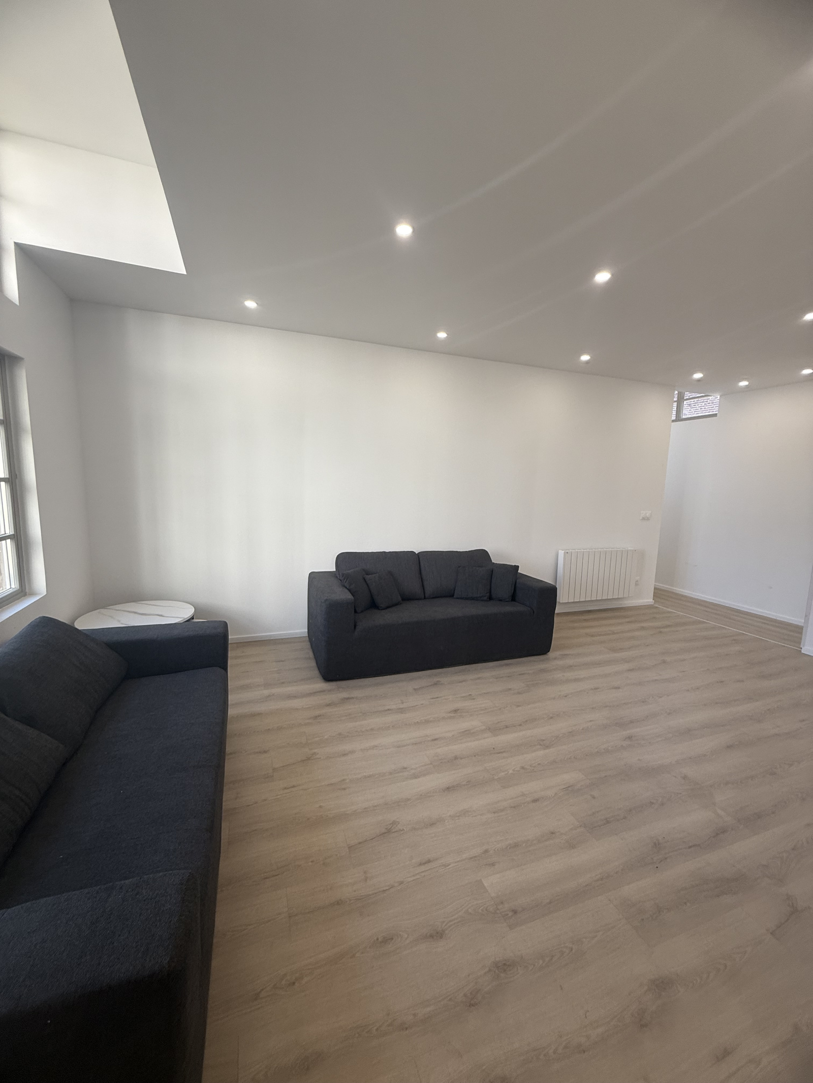 L’espace commun se compose d’un lumineux séjour, d'une cuisine équipée et aménagée et d'un WC commun.
