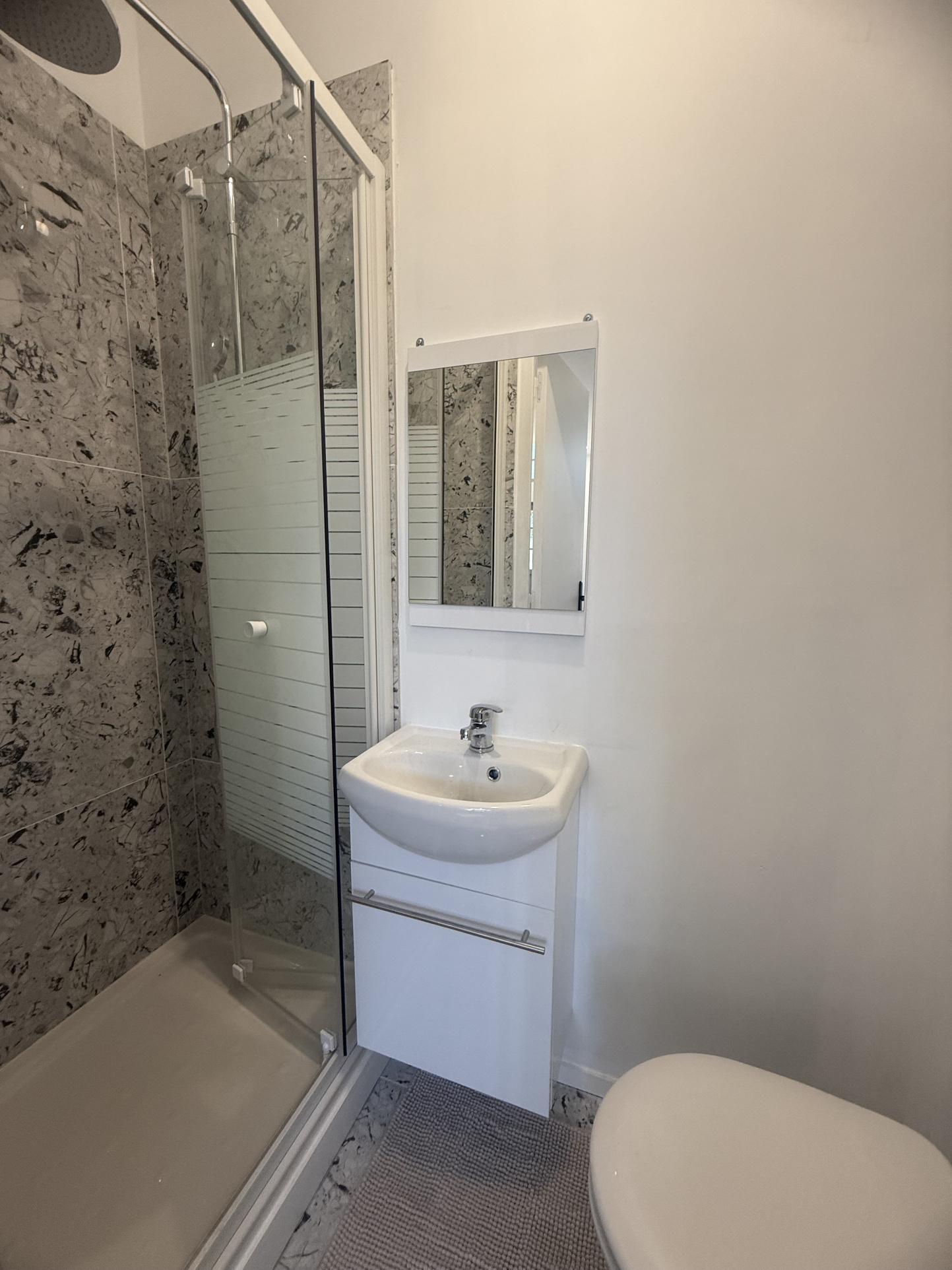 Cette chambre de 15,60m² bénéficie de sa propre salle d’eau privative et de son WC, garantissant confort et intimité.